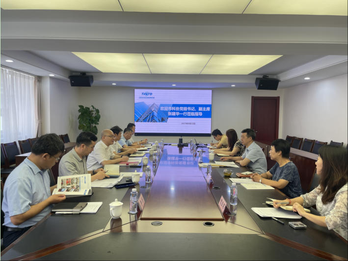 8月22日,市科协党组书记、副主席张建华,党组成员、副主席周子刚一行来战略院走访调研,参观院史展厅、文书苑及MAI实验室,并开展座谈交流。